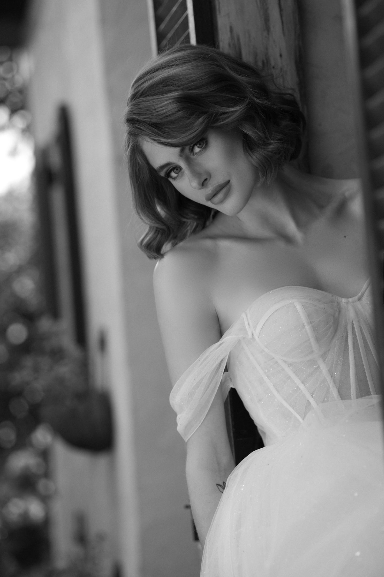- Through a shuttered window
