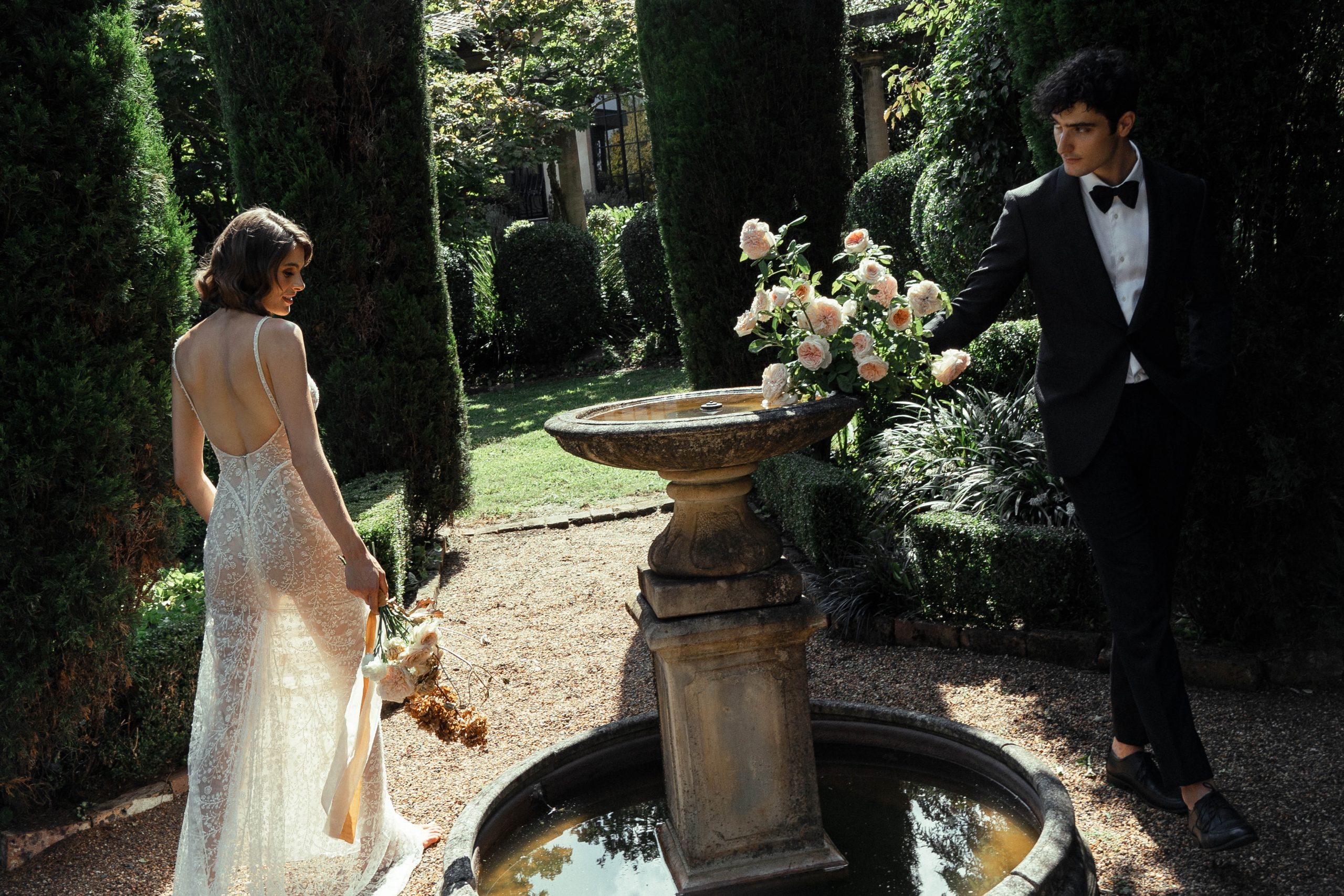 Imagine walking hand-in-hand with your beloved beneath the shade of elegant rose bushes, alongside cascading fountains, and underneath rustic archways, for a unique immersive experience that feels like a slice of Europe at your back door.